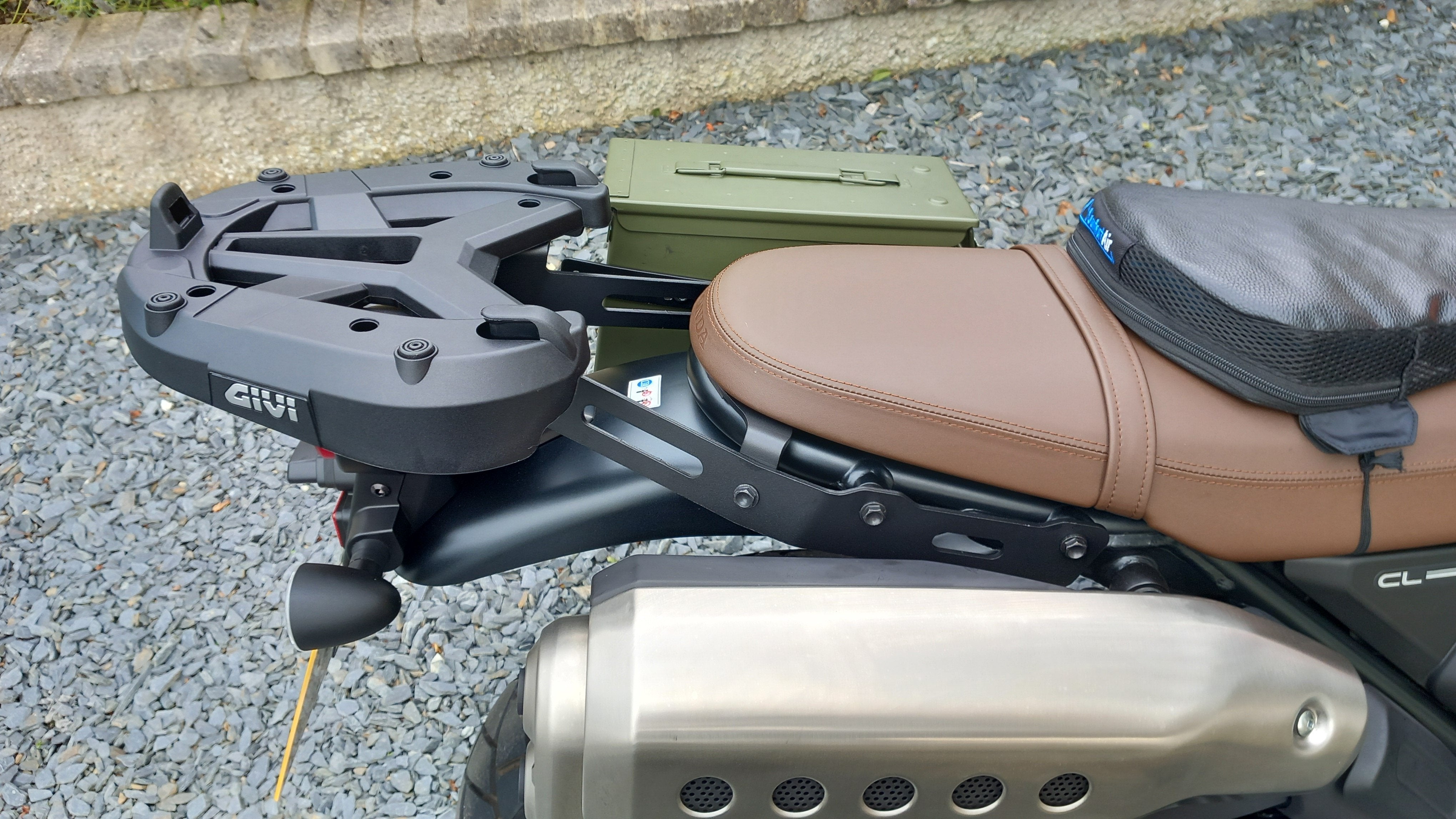 Just fitted a Givi rear rack with the monokey top plate option. I went for the Givi rack because the rack supports are flat steel instead of tubular so It was easier to refit my ammo can.